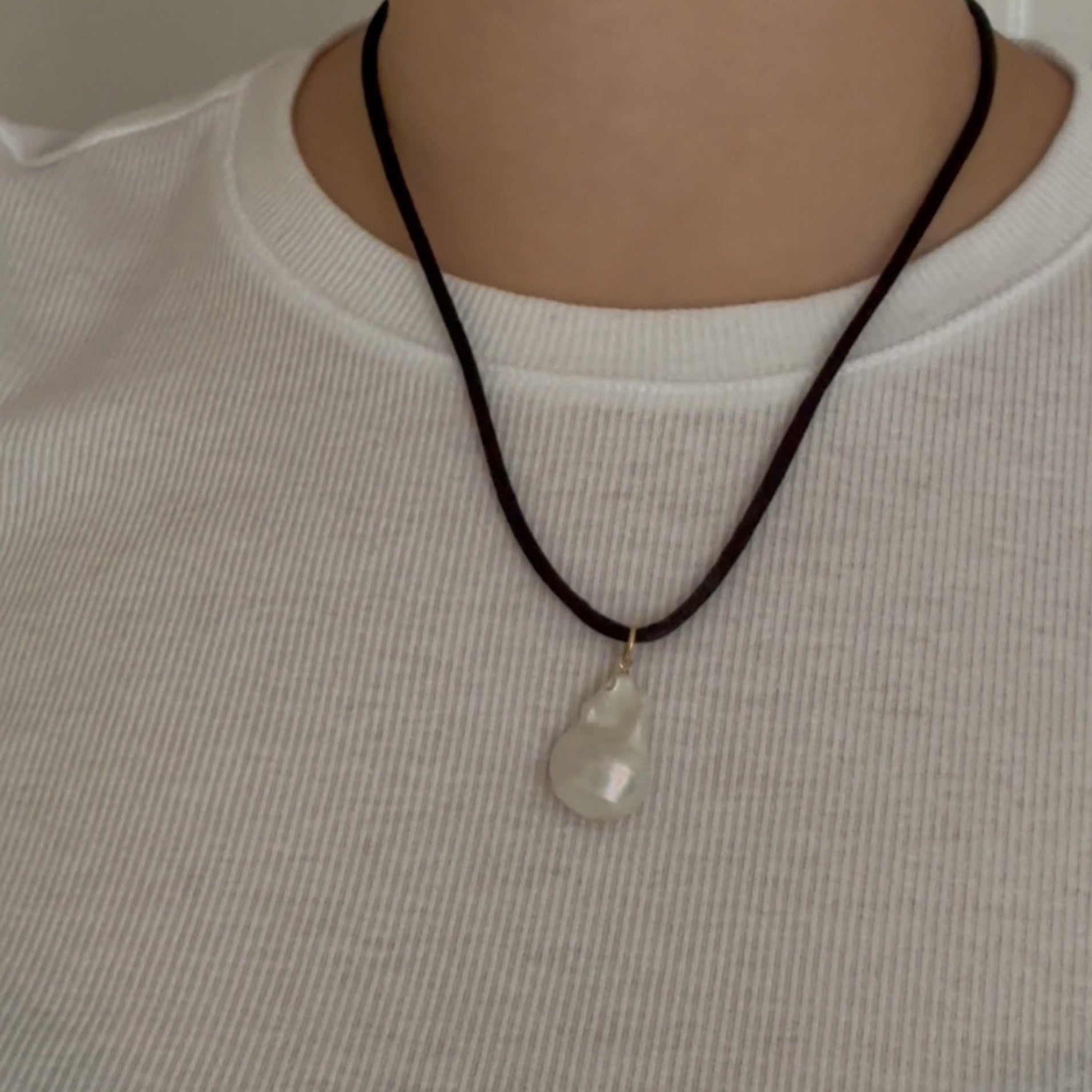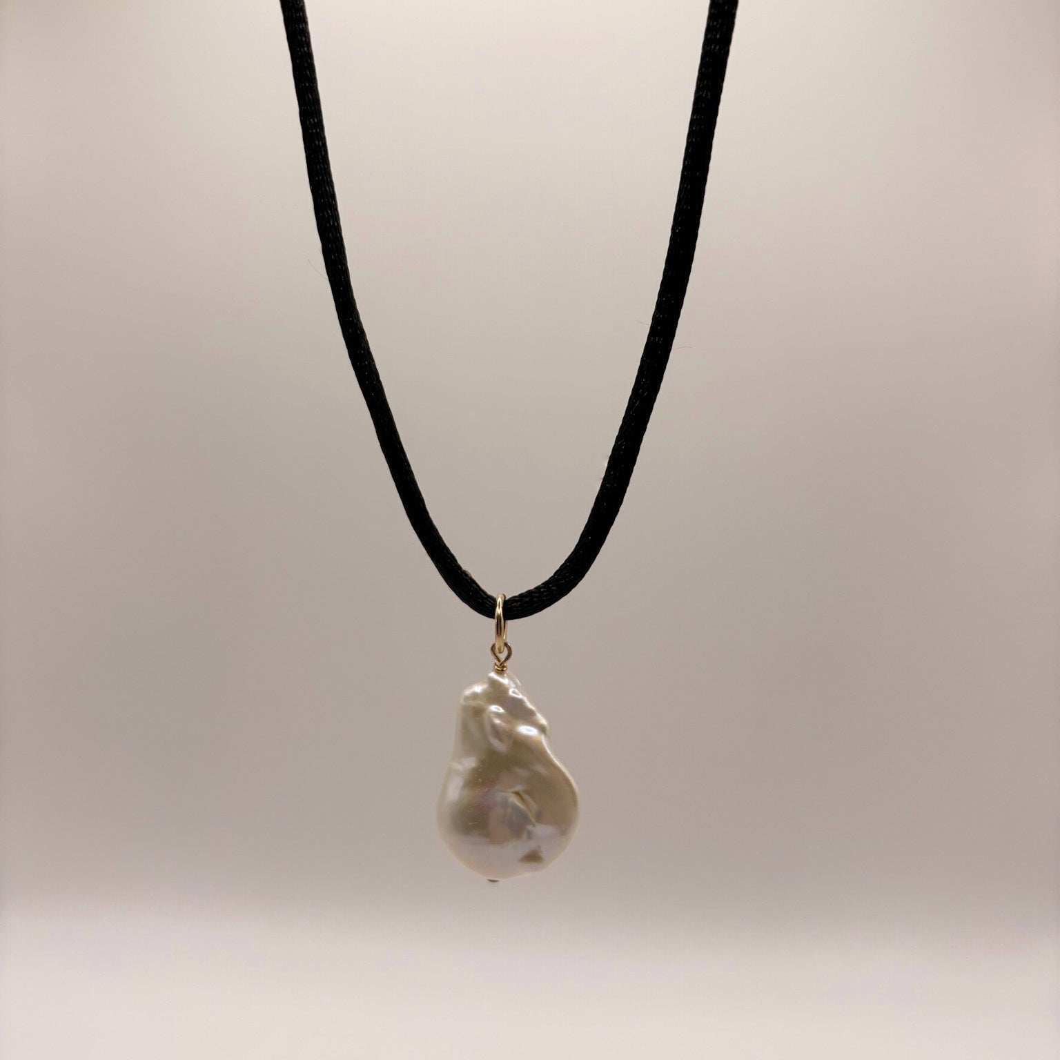 A fall staple with a chic edge, crafted from a sleek black silk cord and a bold baroque pearl, making it as unique as it is timeless.