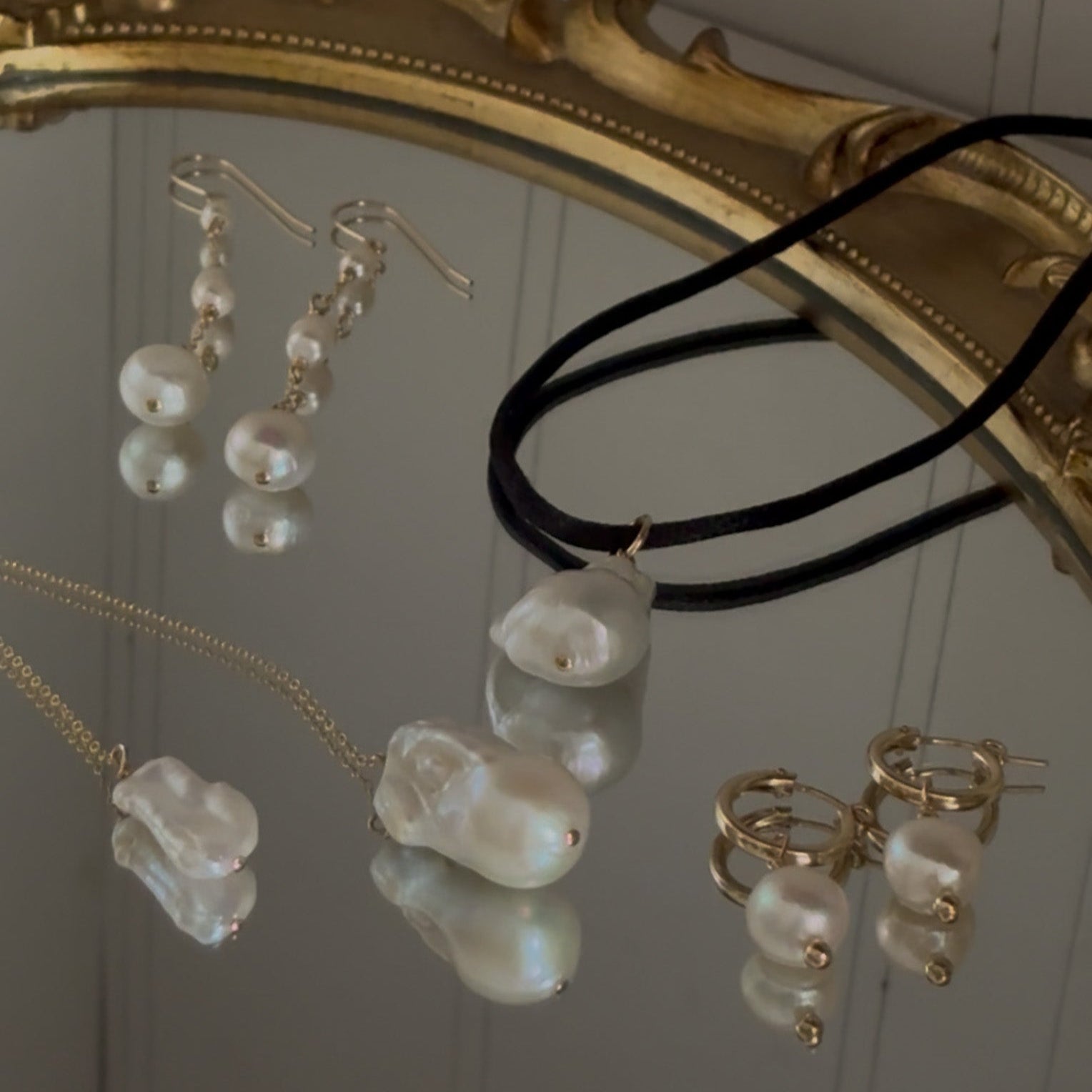 This piece is crafted with freshwater pearls and gold-filled materials—a thick layer of gold bonded over a base metal. It’s hypoallergenic, tarnish-resistant, and safe to wear in water. To preserve its shine, avoid direct contact with chemicals found in soaps, lotions, and perfumes.