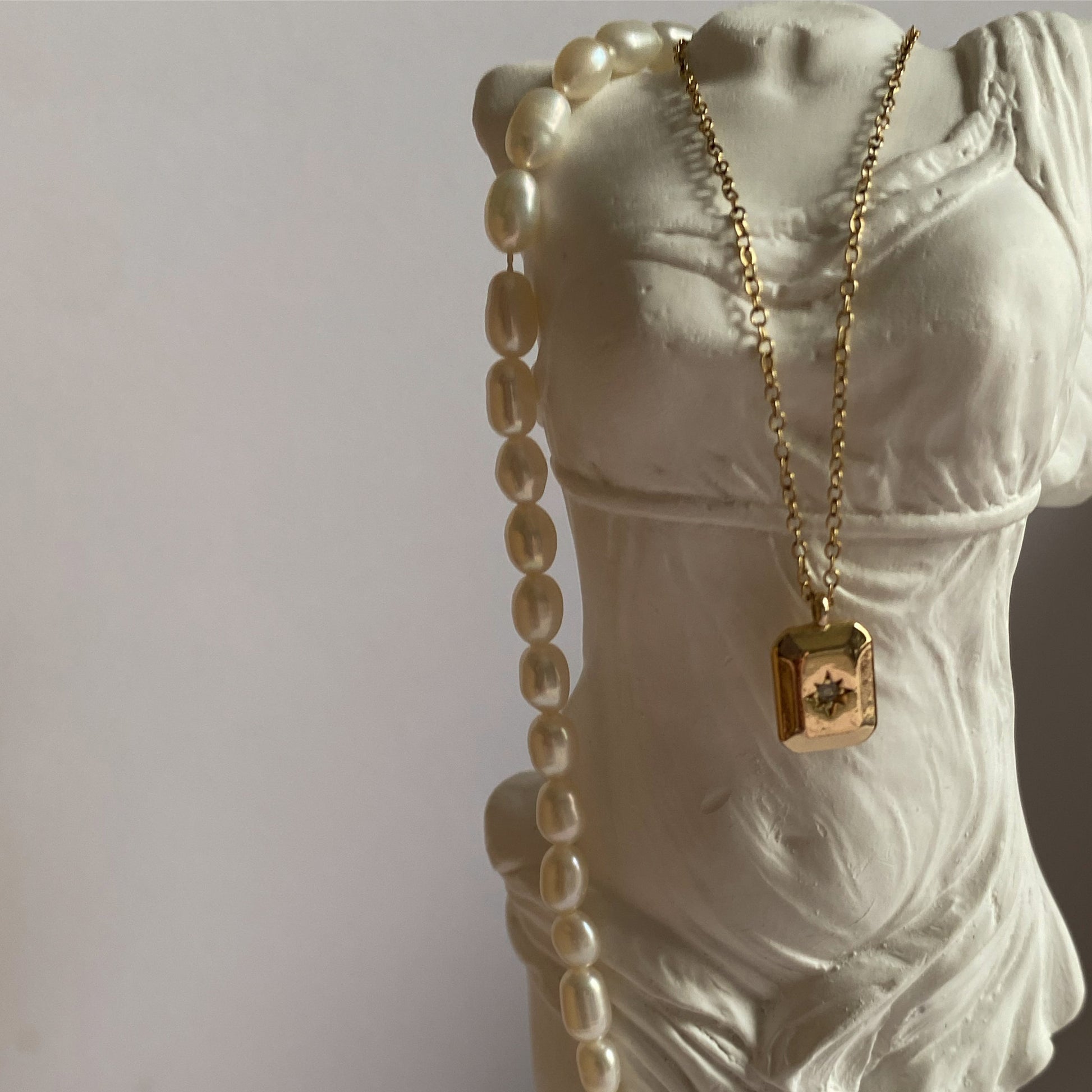 This is made with gold filled materials that are safe to wear in water, but should stay away from chemicals like in soaps, lotions, and perfumes.