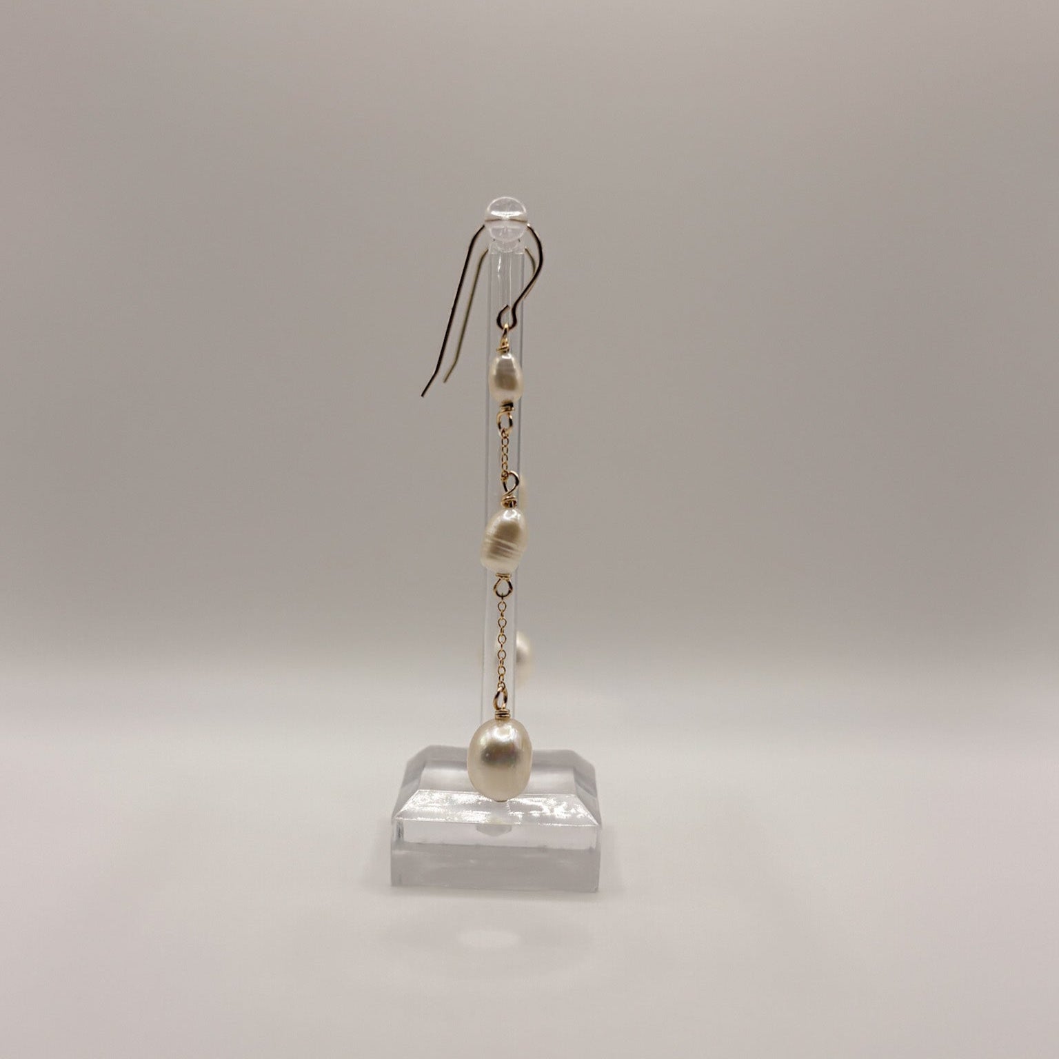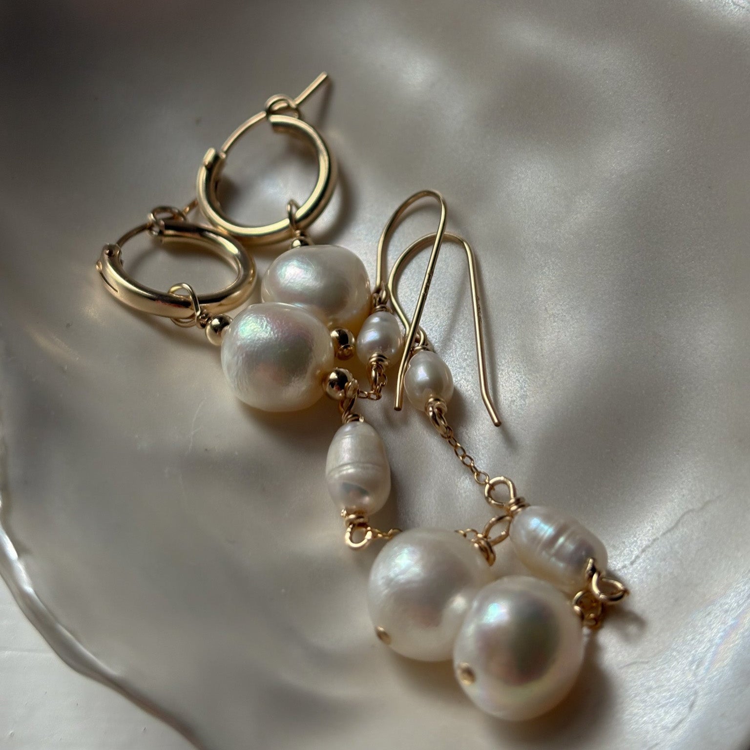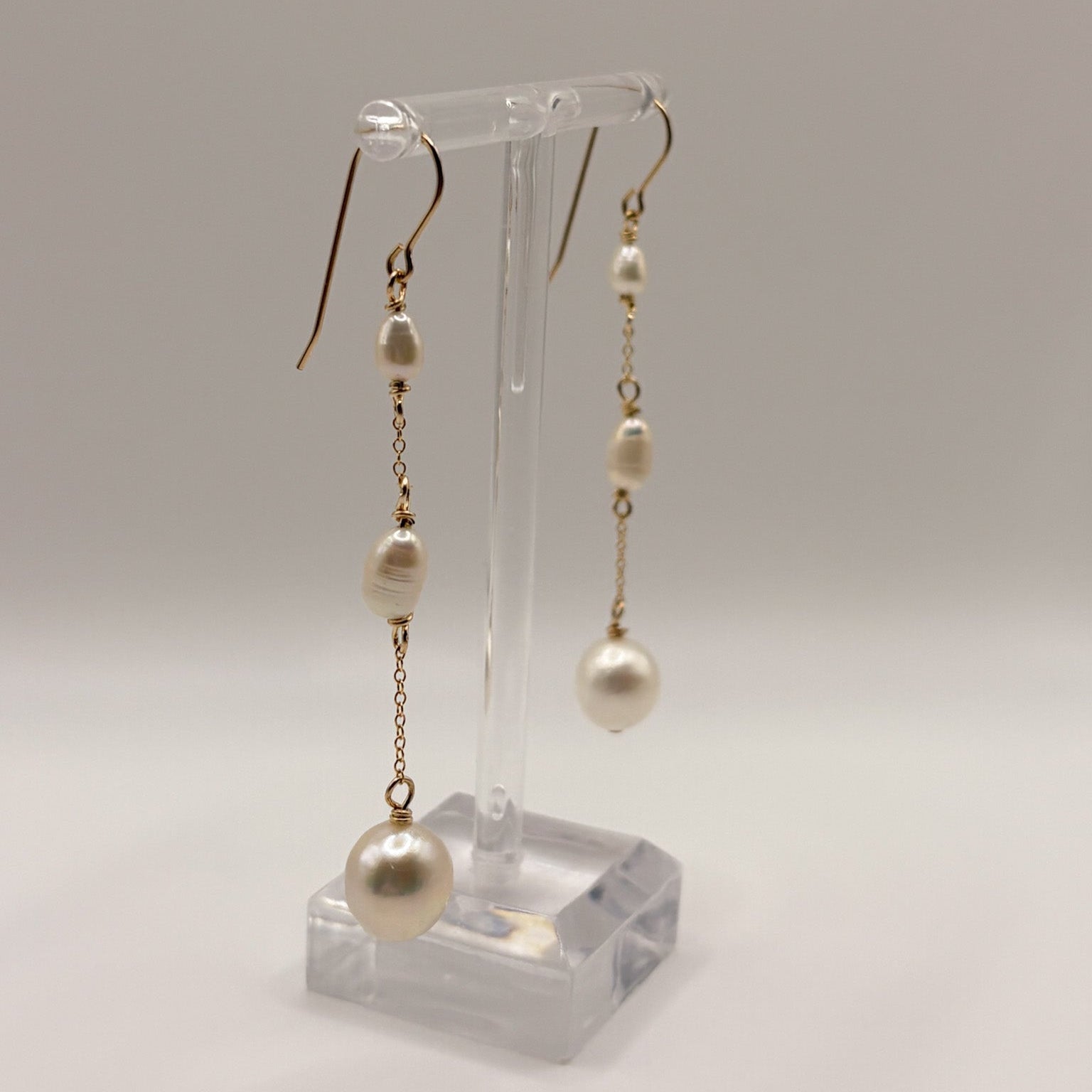These linked freshwater pearl and gold filled chain links are hand crafted to create an elegant and chic staple earring made to dress up any look.