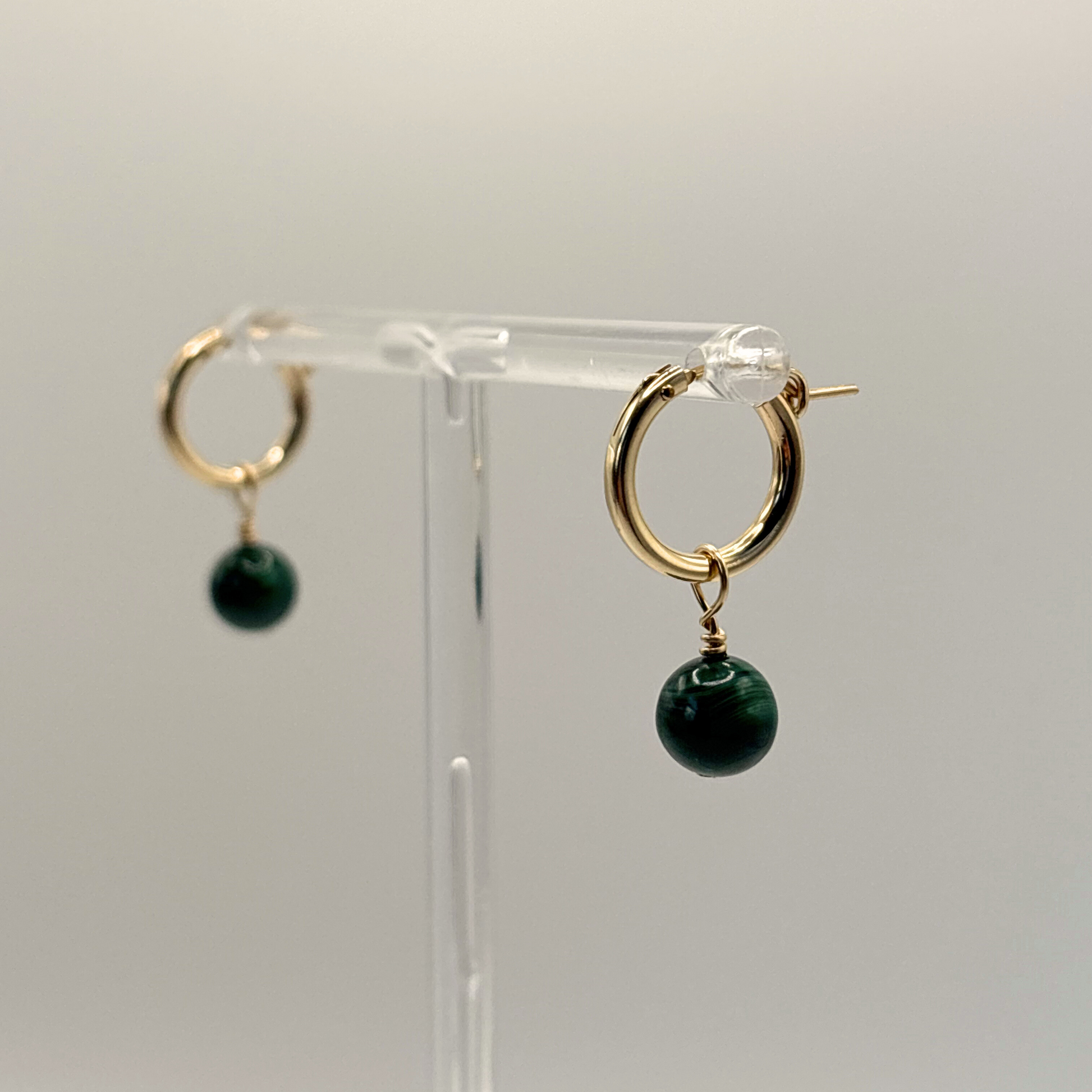 Mila is inspired by effortless confidence and everyday strength. Minimal in form yet rich in meaning, these hoops feature malachite as a symbol of renewal and forward movement. Designed for daily wear, Mila reflects growth that feels natural, personal, and deeply grounded.