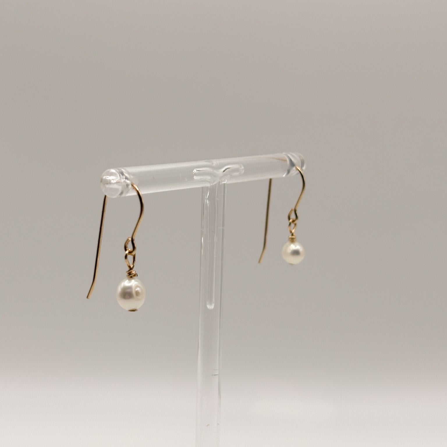 They are made with cultured pearls and gold filled materials. They are safe to wear in water, but should stay away from chemicals like soaps, lotions, and perfumes.